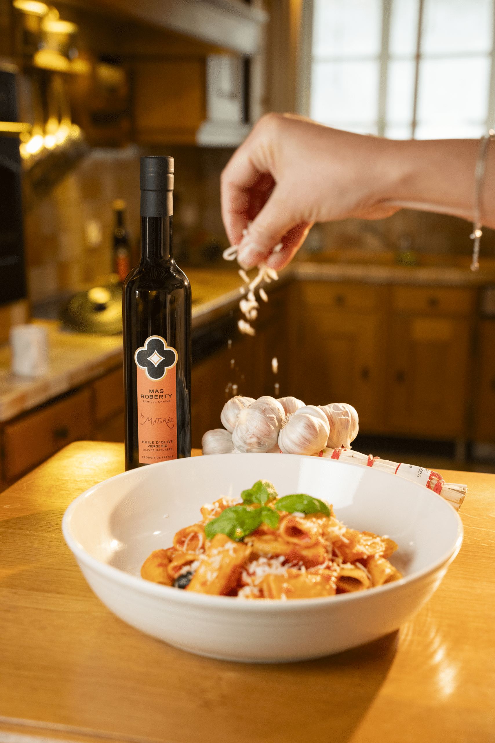 À servir avec des pâtes fraîches, relevé d’un dernier filet de notre huile d’olive La Maturée, pour en révéler toute la profondeur.