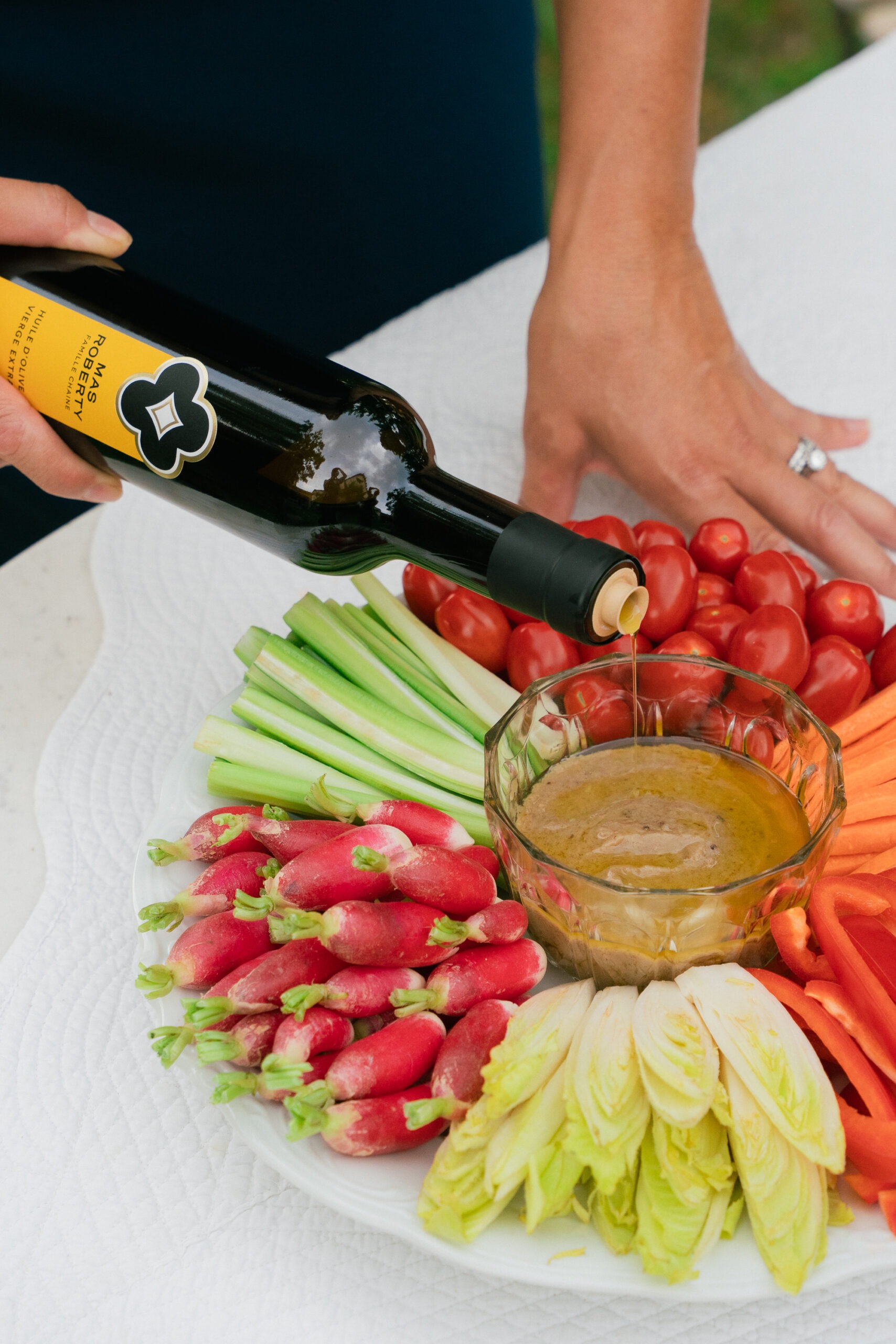8. Terminez par un filet de notre huile d’olive fruité mûr L’Adorée sur les l’anchoïade pour la touche finale.